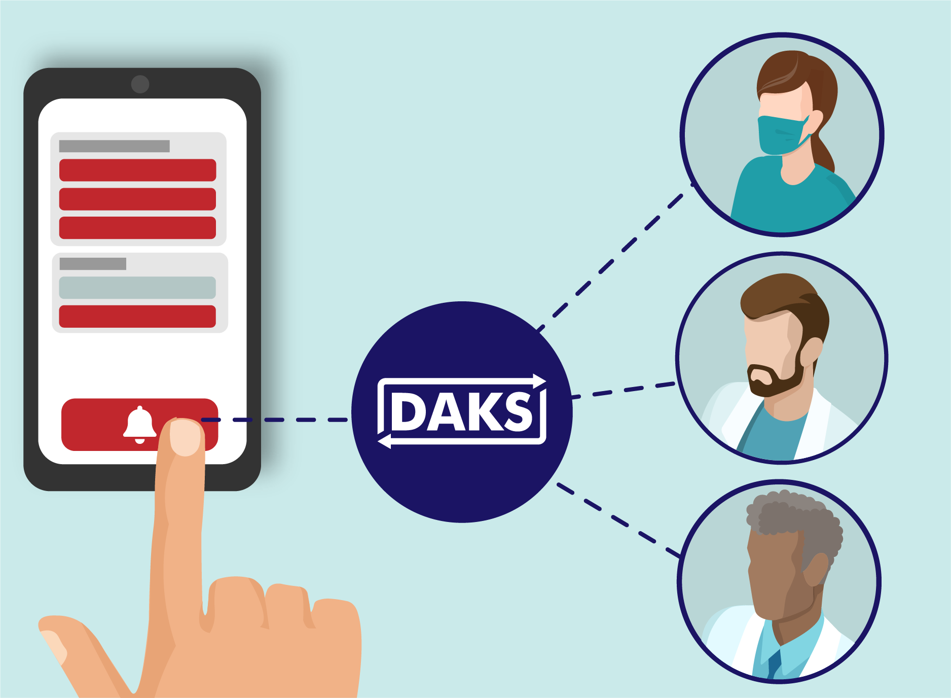 DAKS quickly and reliably assembles the required medical team, Text: