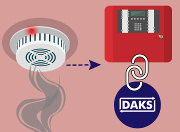 Als sich in einem Raum Rauch bildet, meldet der installierte Rauchmelder ein Signal an die Brandmeldezentrale. An diese gekoppelt ist der Alarmserver DAKS, der nun zahlreiche Kommunikationsaufgaben übernimmt.