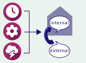 For recurring events, various announcement profiles can be created with DAKS. The profiles can be activated manually via telephone or PC interface or automatically via contacts, time controls or as part of an alerting scenario. Within the same profile, different announcements are played for internal and external callers - employees and citizens thus receive the information that applies to them respectively.