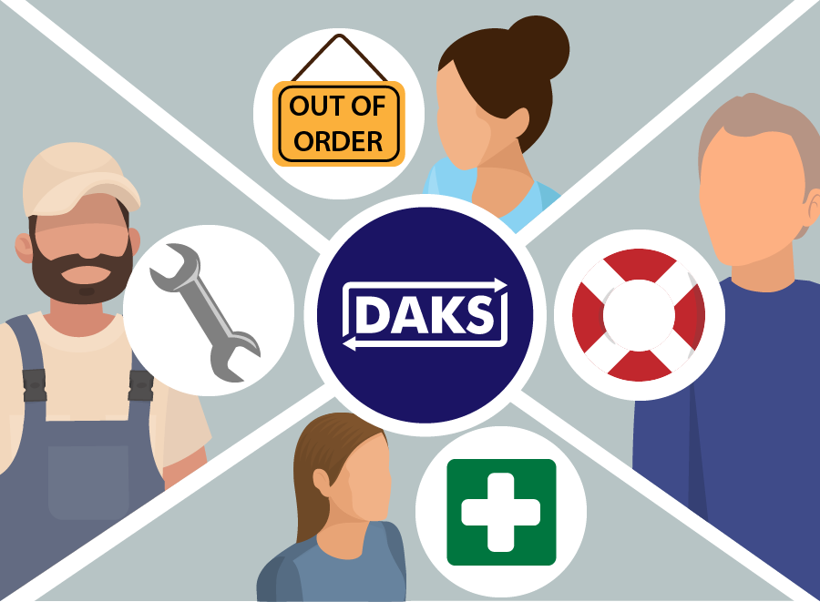 - Because DAKS contacts all those involved automatically and reliably, help is provided as quickly as possible.