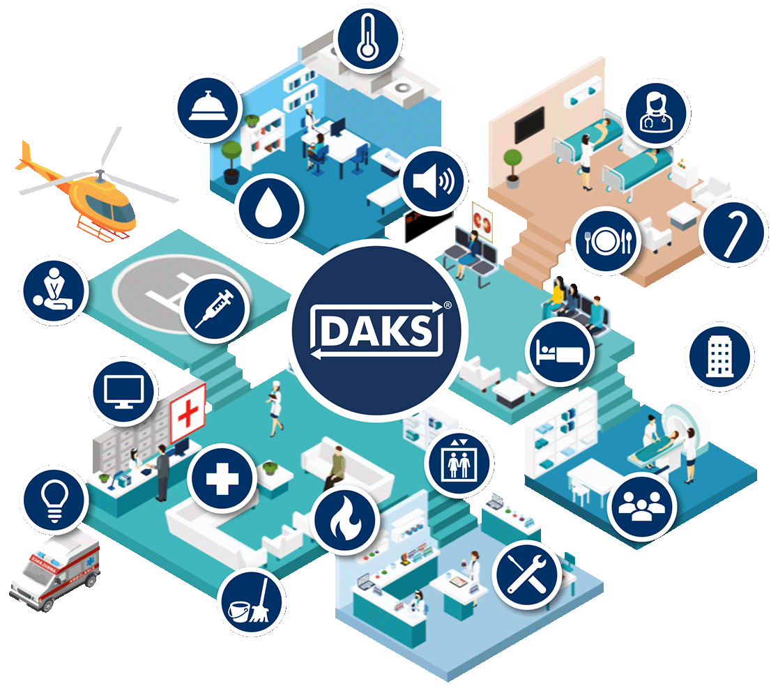 DAKS has multiple applications in the hospital sector. DAKS optimizes important processes in many different areas and can be scaled flexibly. All alert scenarios can be individually tailored to the respective hospital processes and requirements.