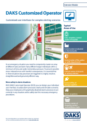 In the event of an alarm, many tasks have to be completed and various target persons notified within a very short time and under enormous pressure. To avoid stress-related errors in such situations, it must be possible to trigger important processes in a particularly intuitive, simple and efficient manner. With the DAKS Customized Operator (DCO) extension, you can design your own individual user interface and thus clearly visualize and simulate alarm processes.
