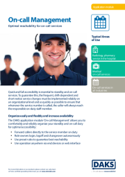 DAKS on-call management enables employees to log on, log off and change on-call duty on their own via telephone or web interface. Preset rules and conditions ensure that the on-call service is always available.