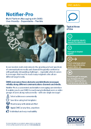 The increasing variety of media and communication channels often poses a challenge in the modern working environment – especially when a message needs to reach many recipients using different target media. DAKS overcomes these limitations and distributes your ad hoc messages via different communication channels and media. The Notifier-Pro messaging interface makes messaging more efficient: Reach any number of participants and groups easily and purposefully with just one message!